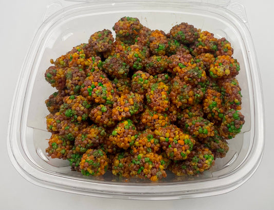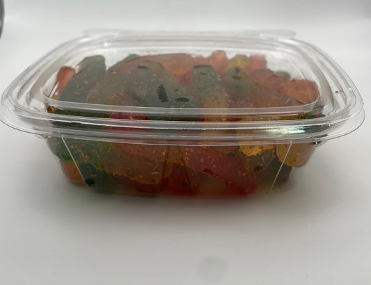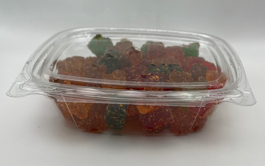 Indulge in our Fiesta Platter featuring succulent gummies, dried fruits, or peanuts, coated with our tantalizing chamoy sauce and chile mixta, giving a sweet yet fiery explosion of flavors in every bite.
